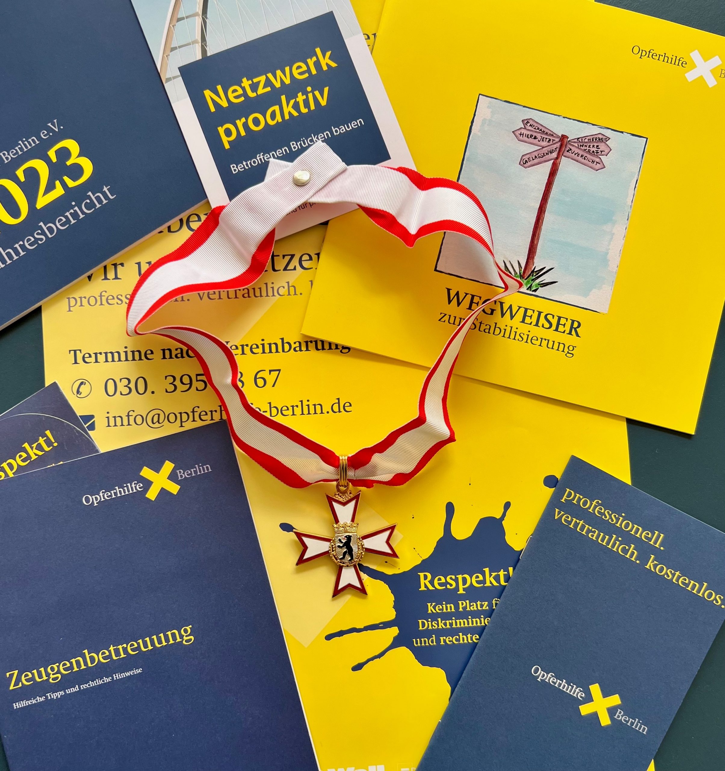Eva Schumann, Geschäftsführerin der Opferhilfe Berlin, wurde mit dem Verdienstorden des Landes Berlin ausgezeichnet. Gewürdigt wurden damit u.a. die Professionalität und Betroffenenorientierung der Opferhilfe Berlin.